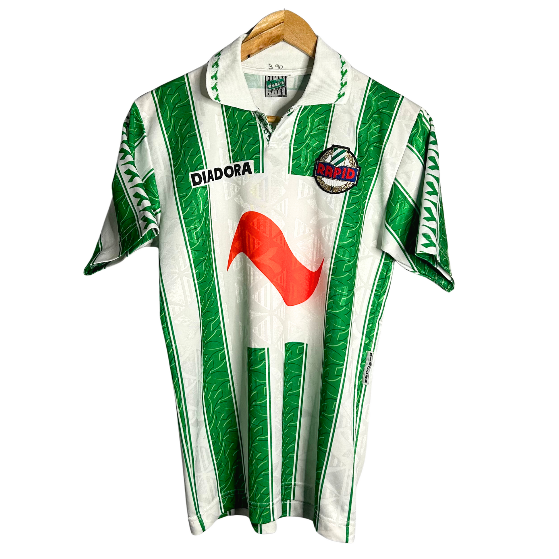 Iconic Diadora shirt, as worn by Austrian giants Rapid Wien across 2 seasons in the Austrian Bundesliga. The team from Vienna finished second in the league twice, also competing in a stacked Champions League group in the 1996-97 season, facing Juventus, Manchester United and Fenerbahce. Tough draw.